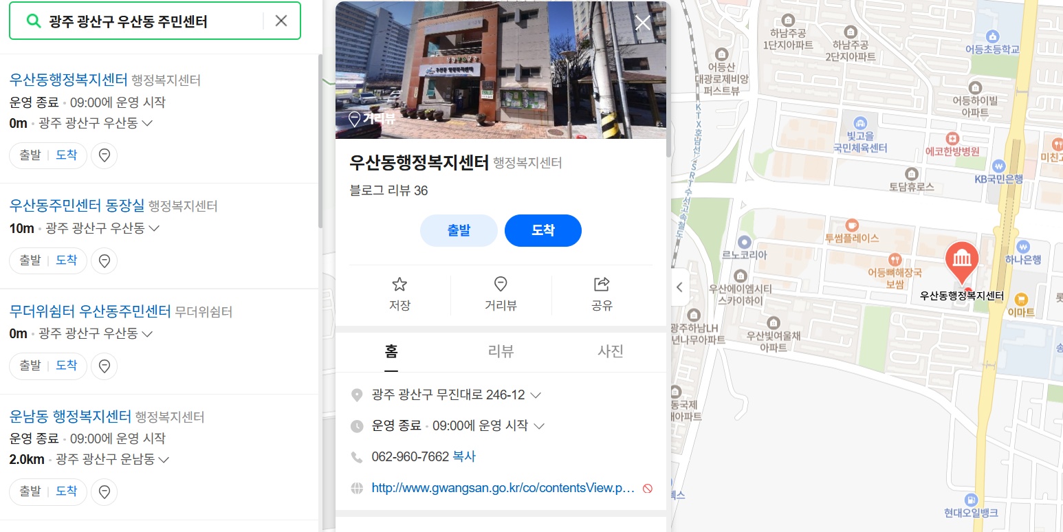 ※ 네이버 지도 또는 카카오맵에서 '주민센터'를 검색하면 가까운 행정복지센터 위치를 쉽게 확인할 수 있습니다.