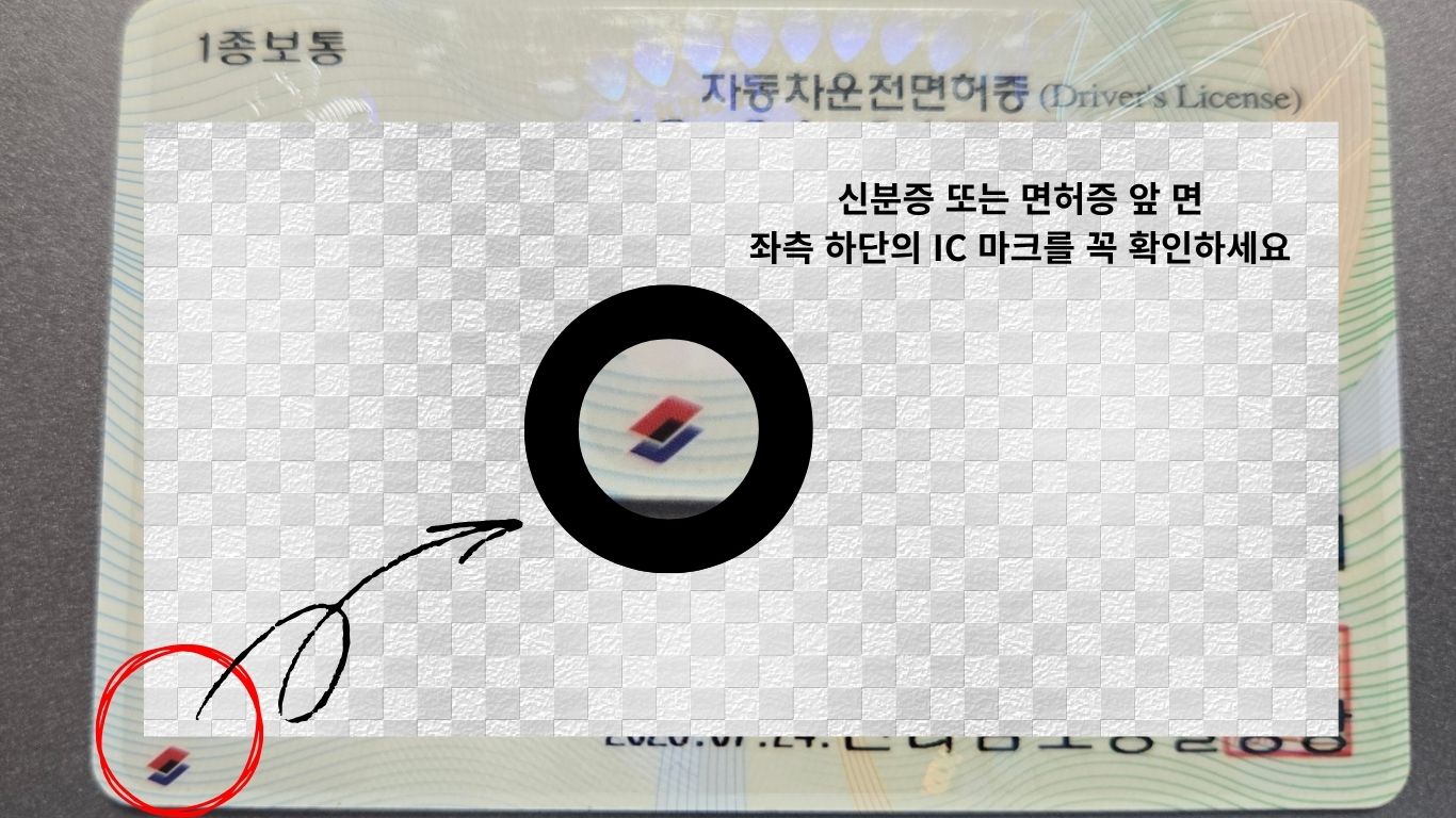 실물 신분증 '앞면' IC 마크 확인
